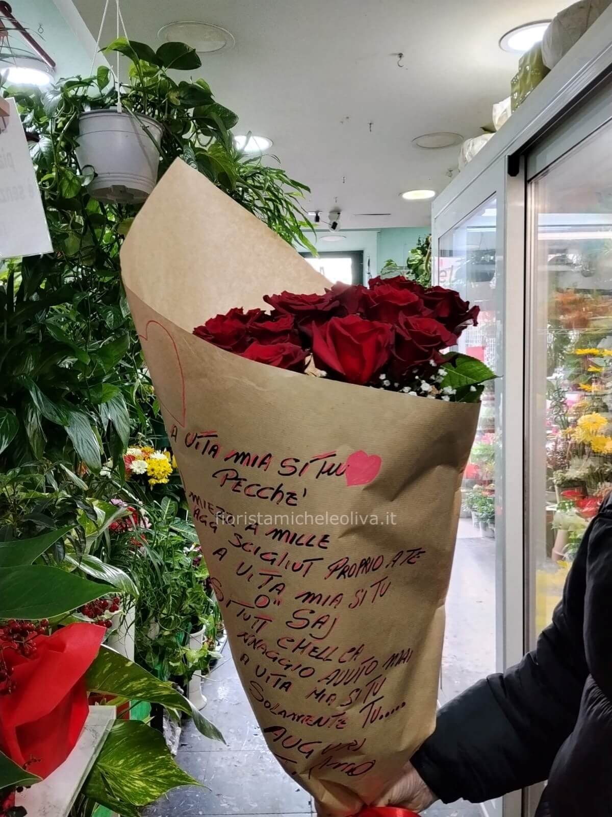 | Fascio di 12 rose rosse con scritta Cod. 124760 | € 60,00 | Quantità : | |